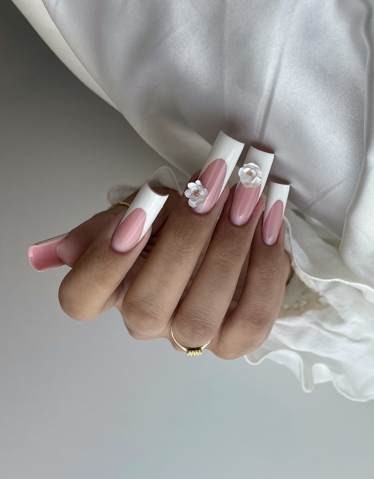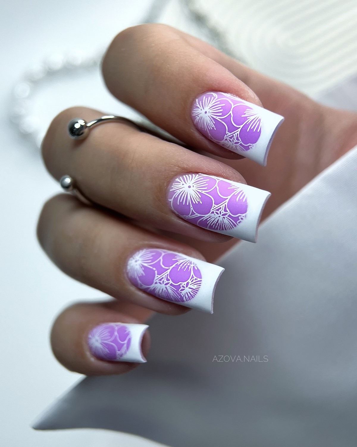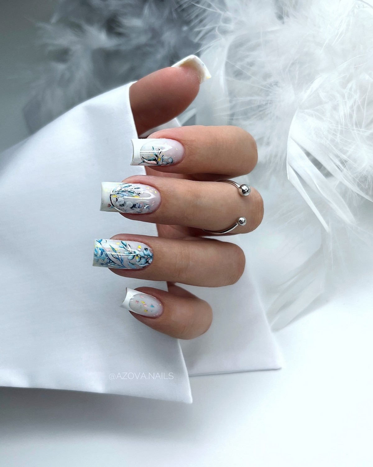 Цветочный дизайн зимой? Да, но в новом прочтении. Это могут быть белые заснеженные бутоны, хрустальные веточки или легкие тиснения под матовым покрытием. Такой френч выглядит как зимняя акварель — нежно и артистично, подчеркивая женственность.