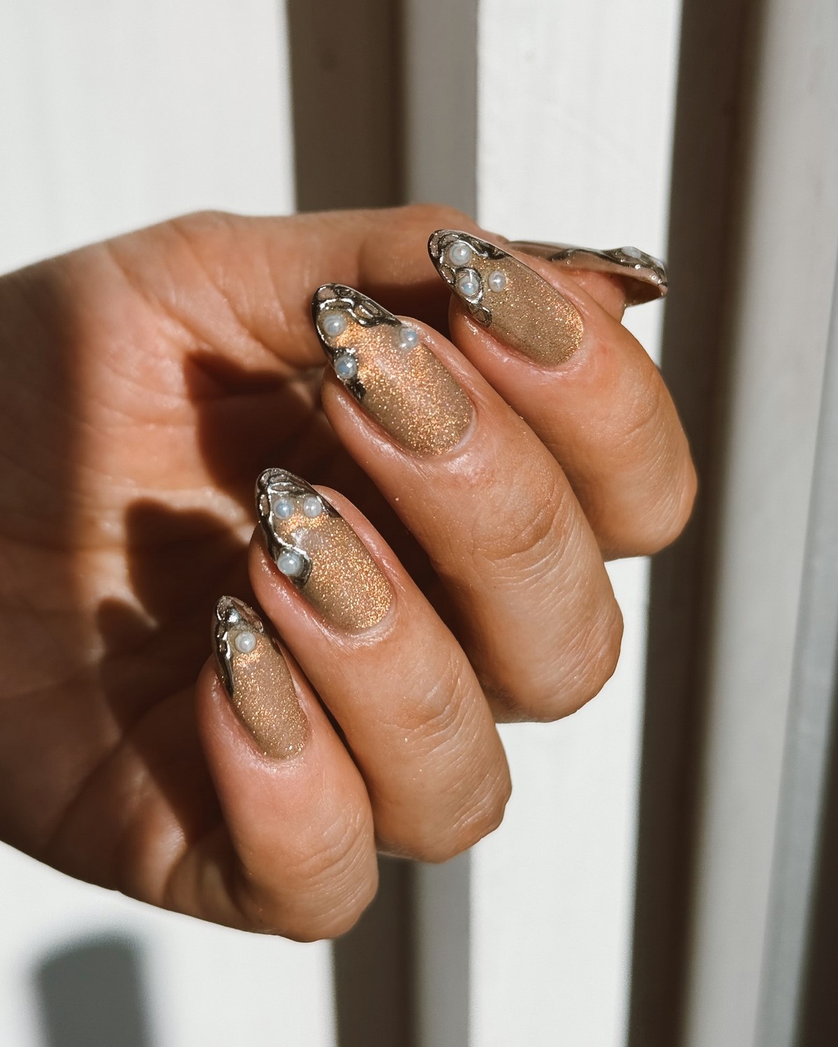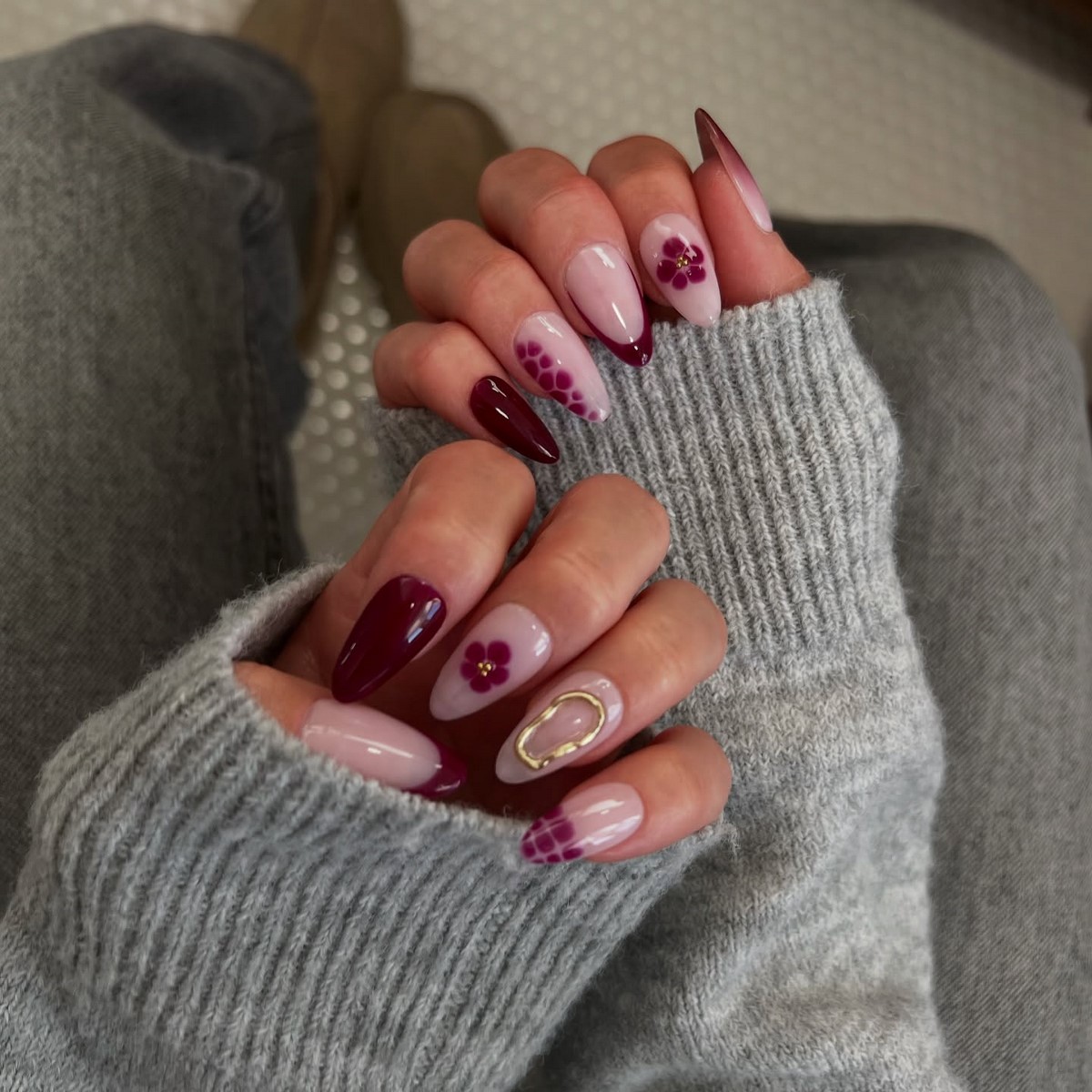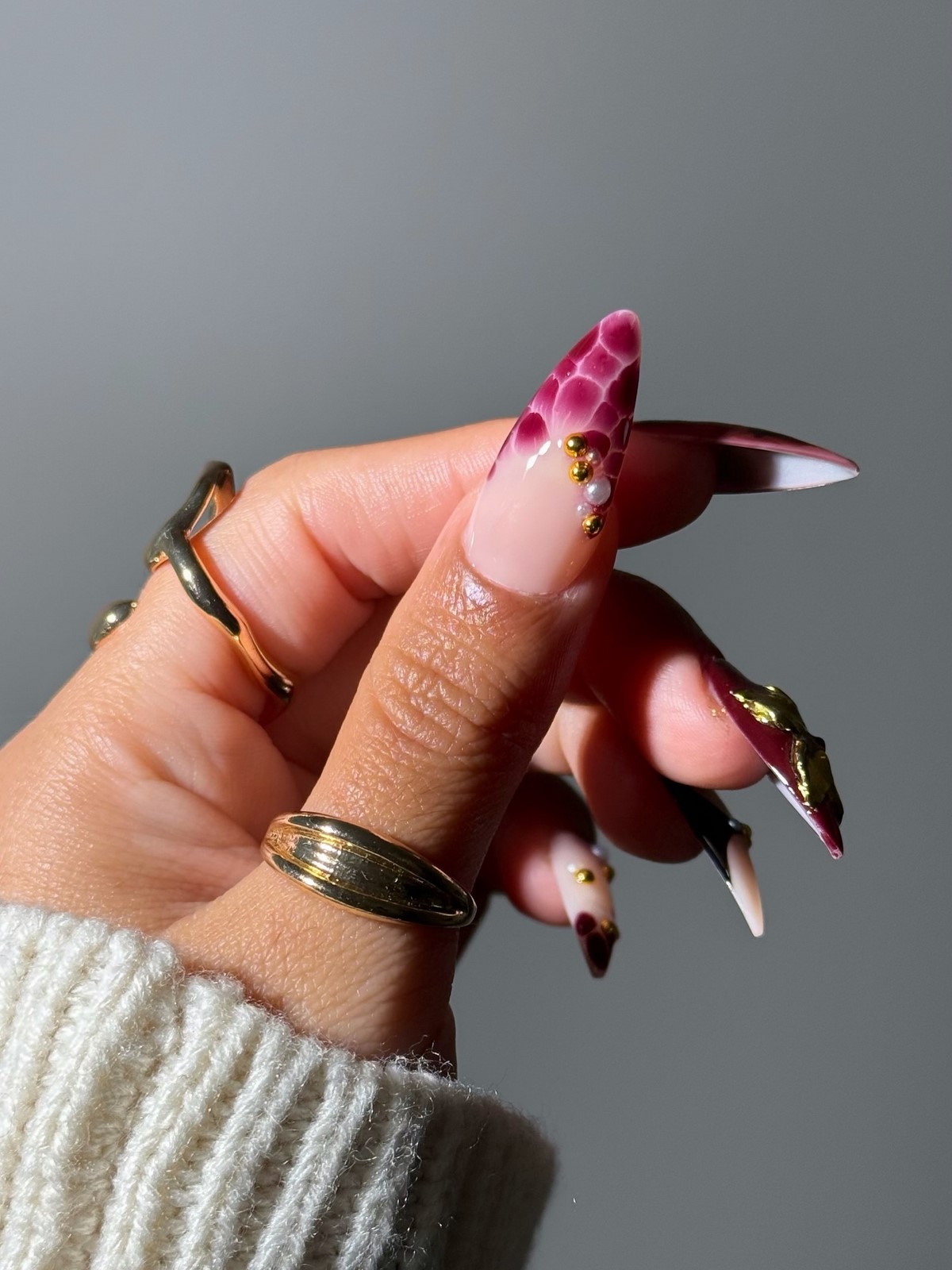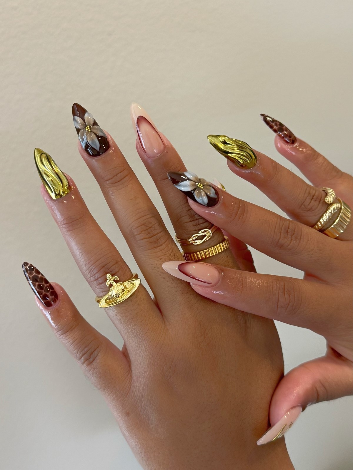 Для тех, кто любит экспериментировать. Мастера предлагают сочетать разные стили — например, на одном ногте классический френч, на другом металлик или аура. Можно играть с текстурами — матовой и глянцевой, прозрачной и зеркальной. Этот дизайн выглядит необычно, но гармонично, если объединяет общая цветовая палитра.