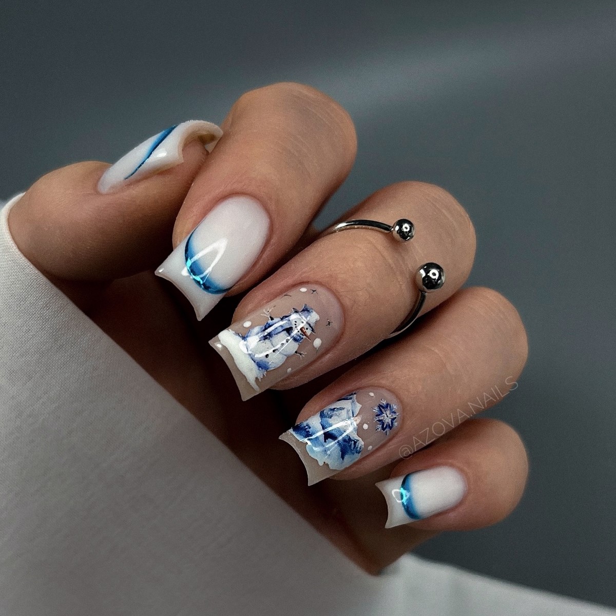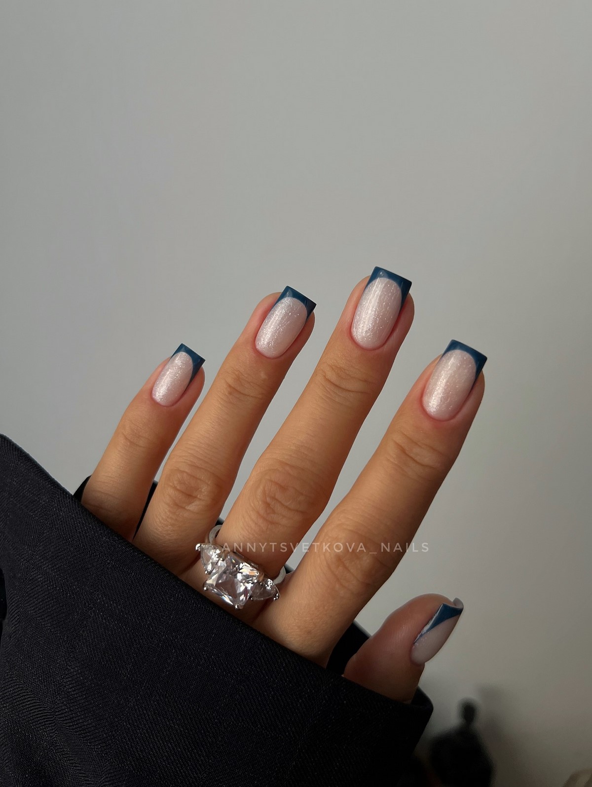 Зимний френч не только про белые кончики — это про игру света, фактур и акцентов. В холодный сезон дизайнеры предлагают экспериментировать с прозрачными базами, градиентом, микроблеском и объемными элементами, создавая эффект снега, инея и зимней магии.