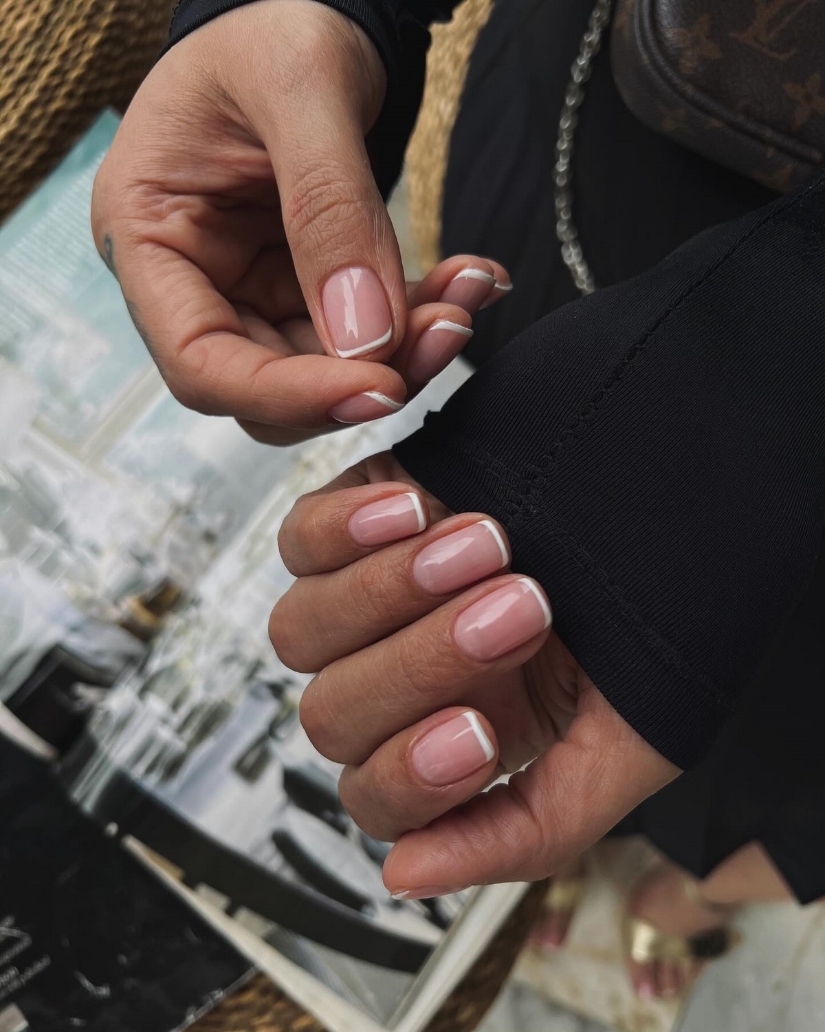Минимализм в лучших традициях сезона. Микрофренч — это тонкая, почти невидимая линия на кончике ногтя, которая придает рукам ухоженность и легкость. Особенно актуальны оттенки молочного, жемчужного и пудрового — они идеально подходят для зимы и визуально удлиняют ногтевую пластину. Такой дизайн хорошо смотрится на коротких и средних ногтях.